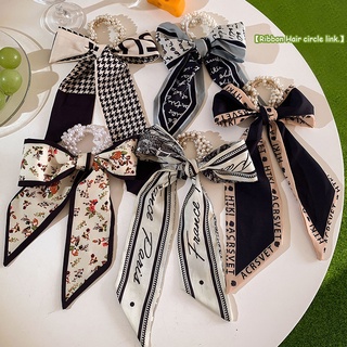 Dây Buộc Tóc Thắt Nơ Ruy Băng Đính Ngọc Trai Giả Kiểu Hàn Quốc Xinh Xắn