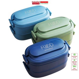 Bộ hộp cơm văn phòng 2 tầng bằng nhựa nguyên sinh chia ngăn chống tràn dododios
