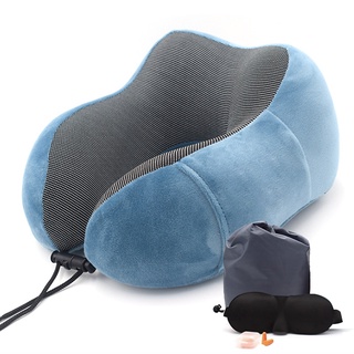 [Xanh Dương] Gối Ngủ Văn Phòng Du Lịch Chữ U Tặng Kèm Bịt Mắt, Bịt Tai Chống Mỏi Chất Liệu Memory Foam - Hãng dododios