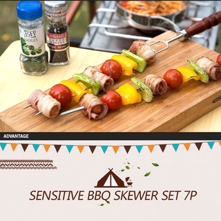 Bộ dụng cụ 7 que xiên nướng bằng thép không gỉ tiện dụng dùng khi đi dã ngoại, nấu nướng tại nhà tiệc tùng bạn bè