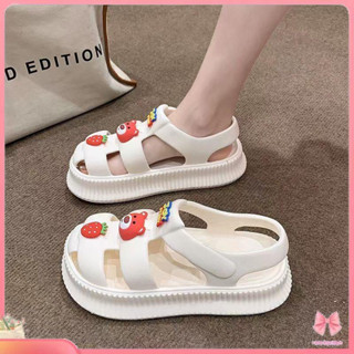 Dép sandan hoạ tiết gấu dâu cực xinh Chất liệu EVA mềm mại và thoải mái, thiết kế đế dày làm tăng kết cấu lồi lõm
