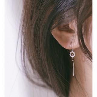 Khuyên tai bạc S925 - Mẫu phía trước vòng tròn đá, phía sau sợi thả