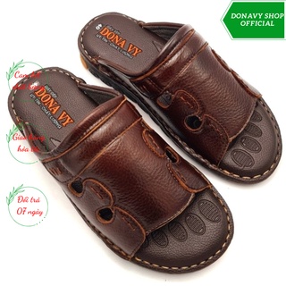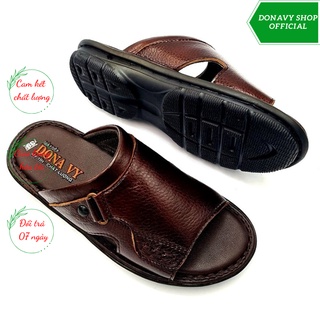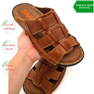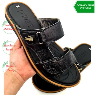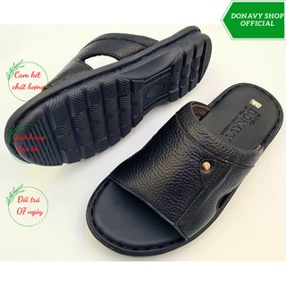 Dép quai ngang nam hàng chính hãng DONAVY,chất da bò 100%,thiết kế đơn giản ,đế may viền và lót massage thoải mái D.MSK