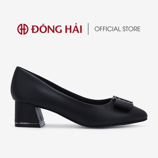 Giày cao gót nữ Đông Hải mũi nhọn đính nơ khóa kim loại thanh lịch gót vuông cao 5cm tôn dáng - G81I4