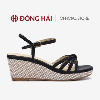 Giày Sandal đế xuồng nữ Đông Hải quai đan chéo đế cói 7cm tôn dáng chất microfiber cao cấp - S5716