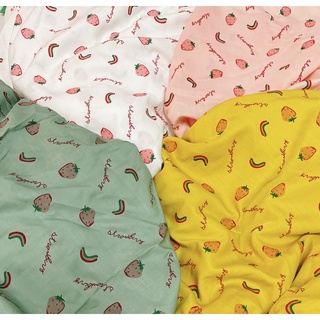 vải đũi lạnh mềm mát mịn may váy,áo,đồ bộ cho trẻ em và người lớn hình quả dâu tây cầu vồng