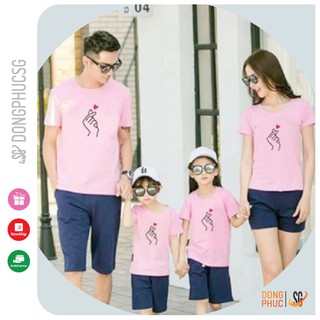 Áo thun đồng phục gia đình 3/4/5 người mẫu bắn tim màu hồng thun cotton mềm mịn GD309HN DONGPHUCSG