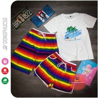 Bộ đồ đi biển nổi bật gồm áo và quần cho hội nhóm gia đình cặp đôi thun dày dặn mẫu cầu vòng DDB59 | DONGPHUCSG