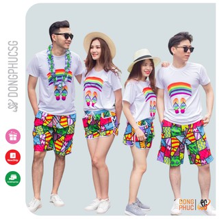 Đồ đi biển nam nữ cặp đôi gia đình - Set đi biển gồm áo và quần nổi bật - Chát thun dày dặn DDB13T | DONGPHUCSG