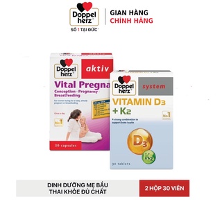 Bộ đôi dưỡng thai bổ sung Vitamin, tăng cường hấp thụ Canxi cho mẹ bầu Doppelherz Vital Pregna + K2 D3 (02 hộp 30 viên)
