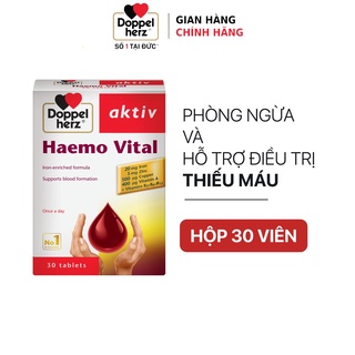 [TPCN Khập Khẩu] Viên uống bổ sung sắt và vitamin, ngừa thiếu máu DoppelHerz Aktiv Haemo Vital (Hộp 30 viên)