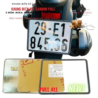 Khung Ốp biển số Inox xi Carbon Gắn mọi loại xe gắn máy (Gồm 3 món Ốp inox sau,Meca,Viền Carbon )