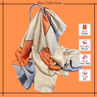 [HỎA TỐC] Khăn choàng, Khăn quàng cổ lụa cao cấp dây xích Màu cam đi biển - Chất Liệu Silk - Size:90x190cm - Mã KS023