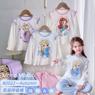 Bộ Đồ Ngủ Áo Tay Dài + Quần Dài Viền Ren In Họa Tiết Hoạt Hình Dễ Thương Thời Trang Xuân Thu Cho Bé Gái