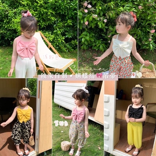 Áo hai dây màu trơn phối nơ xinh xắn phong cách Hàn Quốc cho bé gái