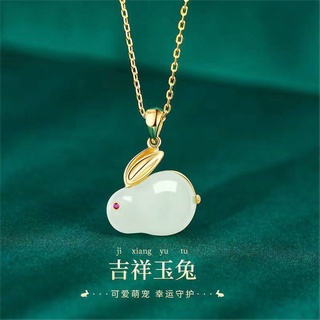 Vòng cổ Mặt Đá Ngọc Bích Hình Thỏ Con Xinh Xắn Cho Nữ