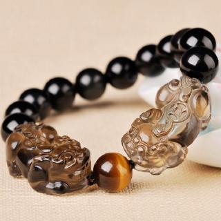 Vòng đeo tay mặt hình tỳ hưu đá obsidian chất lượng
