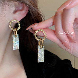DREJEW Bông Tai Dáng Dài Đính Kim Cương Thời Trang Phong Cách Hàn Quốc Cho Nữ