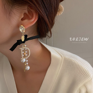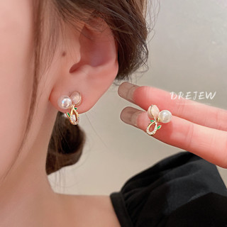 DREJEW Bông Tai Hình Nơ Đính Kim Cương Pha Lê Thời Trang Hàn Quốc Cho Nữ