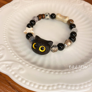 DREJEW Vòng Tay Chuỗi Hạt Đá Tự Nhiên Hình Mèo Hoạt Hình Phong Cách Ngọt Ngào
