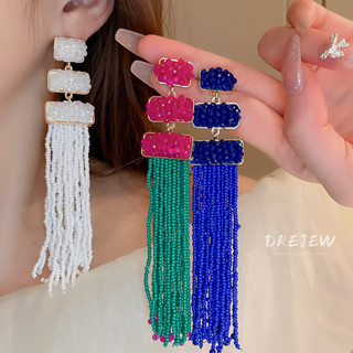 DREJEW Khuyên Tai Tua Rua Hạt Acrylic Phong Cách Âu Mỹ