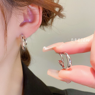 DREJEW Bông Tai Hình Chữ C Hai Lớp Bằng Bạc Thời Trang Hàn Quốc