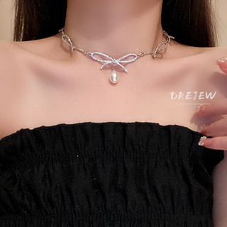 DREJEW Vòng cổ Mặt Nơ Đính Ngọc Trai Thời Trang