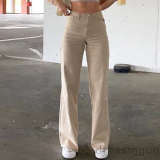 Quần Jean Ống Loe Rộng Lưng Cao Màu Trơn Thời Trang Cho Phụ Nữ