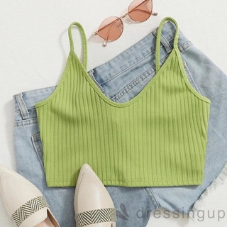 DRESSINGUP-Áo Dáng Ngắn Hai Dây Hở Lưng Cổ Chữ V Màu Trơn Cá Tính Độc Đáo Cho Nữ