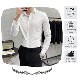Áo sơ mi nam trắng đen dài tay kiểu mới hàn Quốc cao cấp công sở - , vải lụa trơn không nhăn co giãn nhẹ DT Limited
