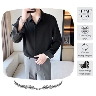 Áo sơ mi nam lụa trắng đen kiểu hàn Quốc cao cấp công sở - dáng ôm body , vải lụa trơn không nhăn co giãn nhẹ DT Limited