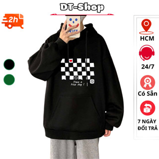 Áo khoác nỉ hoodie nam nữ in hình bàn cờ form rộng giá rẻ chất vải dày dặn kiểu dáng basic