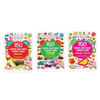 Sách-Combo 3c 150 miếng dán hình thông minh Động vật,phương tiện giao thông,trái cây - rau củ