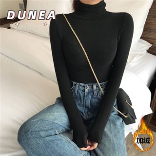 DUNEA Áo thun tay dài cổ lọ màu trơn dáng ôm thời trang Hàn Quốc