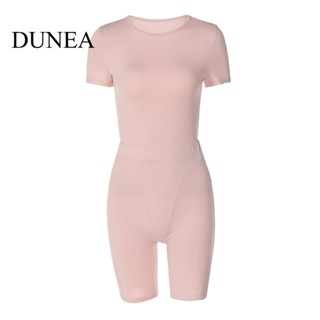 DUNEA Set Áo Tay Ngắn Cổ Tròn + Quần Sọt Lưng Cao Cho Phái Nữ