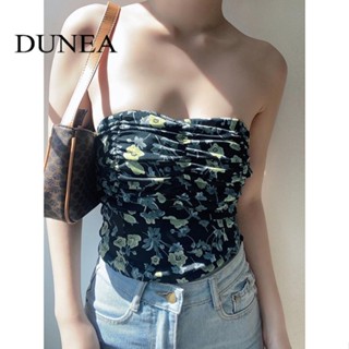 DUNEA Áo Croptop Trễ Vai Hoạ Tiết Hoa Thời Trang Mùa Hè Cho Phái Nữ