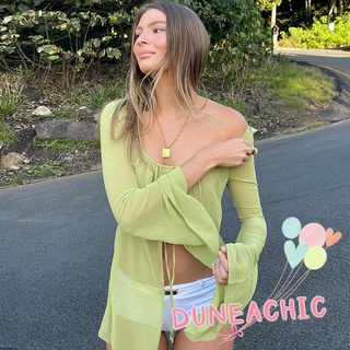 DUNEA Áo Thun Dệt Kim Dáng Rộng Hở Vai Xuyên Thấu Gợi Cảm Cho Nữ Đi Biển