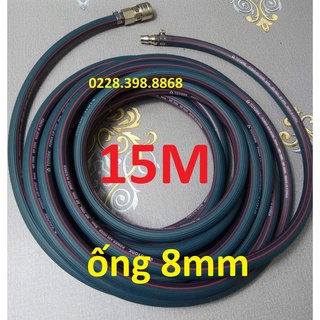Dây hơi cao su bố vải 15m, made in Korea, lỗ 8mm, kèm bộ đầu nối nhanh cao cấp (SS1983) (SS6704)