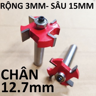 Mũi cuốc gỗ 4 cánh, rộng 3mm, sâu 15mm - Mũi phay rãnh đầu bi, mũi soi gỗ