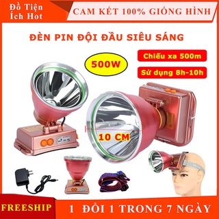 Đèn pin đội đầu siêu sáng 500W chiếu xa 500m, pin trâu sử dụng 8-10 giờ, đèn đeo trán A9 chống nước cao cấp chóa 10CM