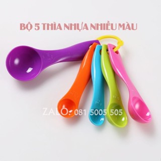 Bộ 5 thìa nhựa đong định lượng nhiều màu sắc có thể đong ml và gam Dụng cụ pha chế QDP