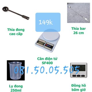 Combo 5 dụng cụ pha chế: Cân điện tử - Đồng hồ bấm giờ - Thìa đong 15g cao cấp - Thìa bar - Ca 250ml