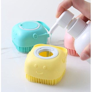 Cọ tắm vuông silicon có tay cầm massage và ngăn chứa sữa tắm