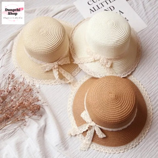 Nón cói vành nhỏ nơ ren viền ren