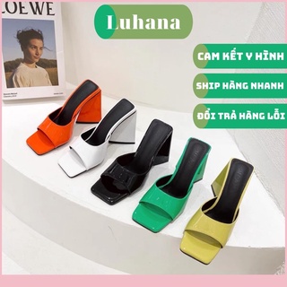 Giày guốc cao gót tam giác Luhana quai ngang hở mũi vuông thời trang siêu hot.Ms: Gót Tam Giác