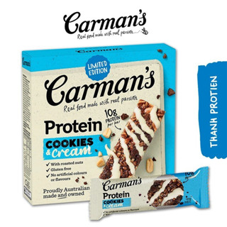 Thanh hạt Protein Bar giàu đạm Carman's GOURMET PROTEIN BARS - Cookies & Cream Protein Bars - Hộp 5 thanh 200g