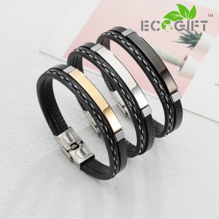 Vòng Tay Da Bện Nhiều Lớp ECGIFT BR006 Bằng Thép Không Gỉ Phong Cách Công Sở Cho Nam
