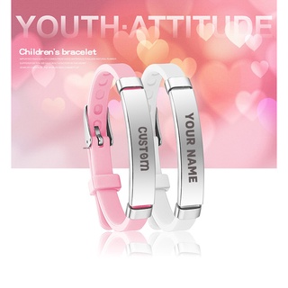Vòng Tay Cao Su Silicone Phối Thép Không Gỉ Khắc Chữ ECGIFT BR033 Nhiều Màu Tùy Chọn Thích Hợp Làm Quà Sinh Nhật Cho Bé Trai / Gái