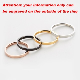 ECGIFT RI001 Vòng titan không gỉ mạ vàng 3mm 18k có khắc Vòng thép không gỉ CÁ NHÂN HÓA CHO CÁC CẶP VỢ CHỒNG NỮ Nhẫn thép không gỉ nữ