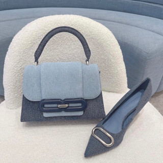 Túi Nữ Quai Xách Pd Chất Vải Denim phối da thời trang có dây đeo chéo